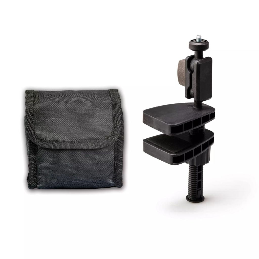 Incluye pinza universal para fijar en bordes, estantes o superficies diversas